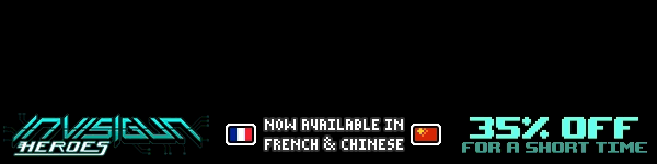I'm happy to add French and Chinese to the supported languages (see your options screen), thanks to the excellent hard work and attention to detail from Jean Serfati and Kai Shao. That brings the supported languages up to 6 as these two new additions join English, Japanese, Spanish, and Italian. It's exciting to welcome in a new group of players. To celebrate, enjoy the 35% off sale for a limited time! While there are major things in the works for Invisigun, I still can't announce any details just yet. However this patch also brings a few more updates and bug fixes. Thanks to the Discord community (http://discord.gg/invisigun) for continuing to post suggestions and report any issues.